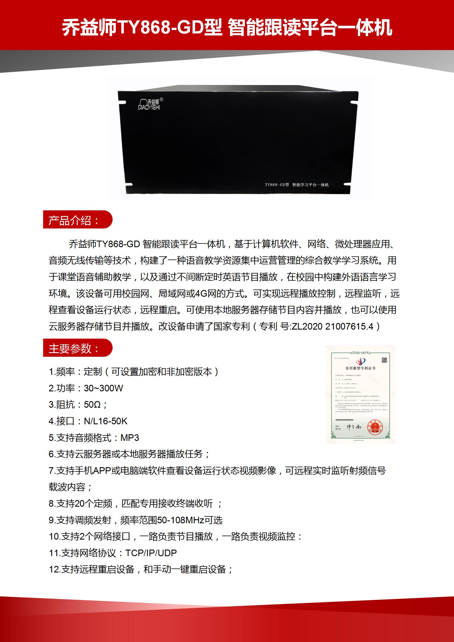 乔益师TY868-GD 智能跟读平台一体机 单价:99800元